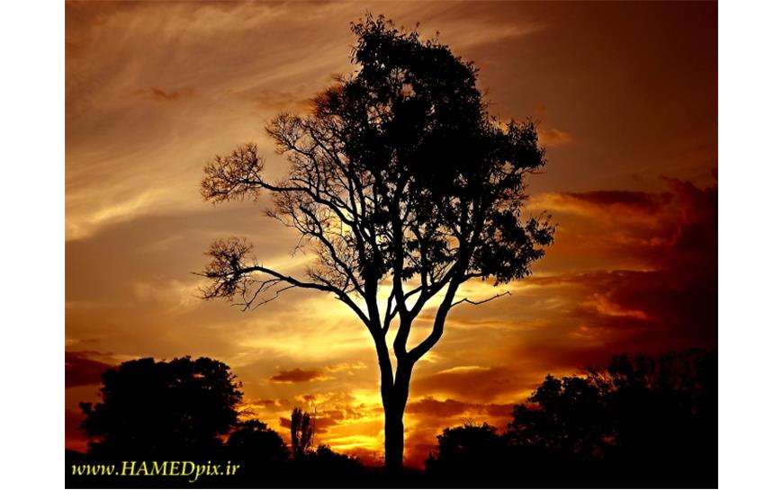 غروب زيبا ، ضد نور ، غروبي در ابهر ، ابهر غروب ، تک درخت ، درخت در غروب